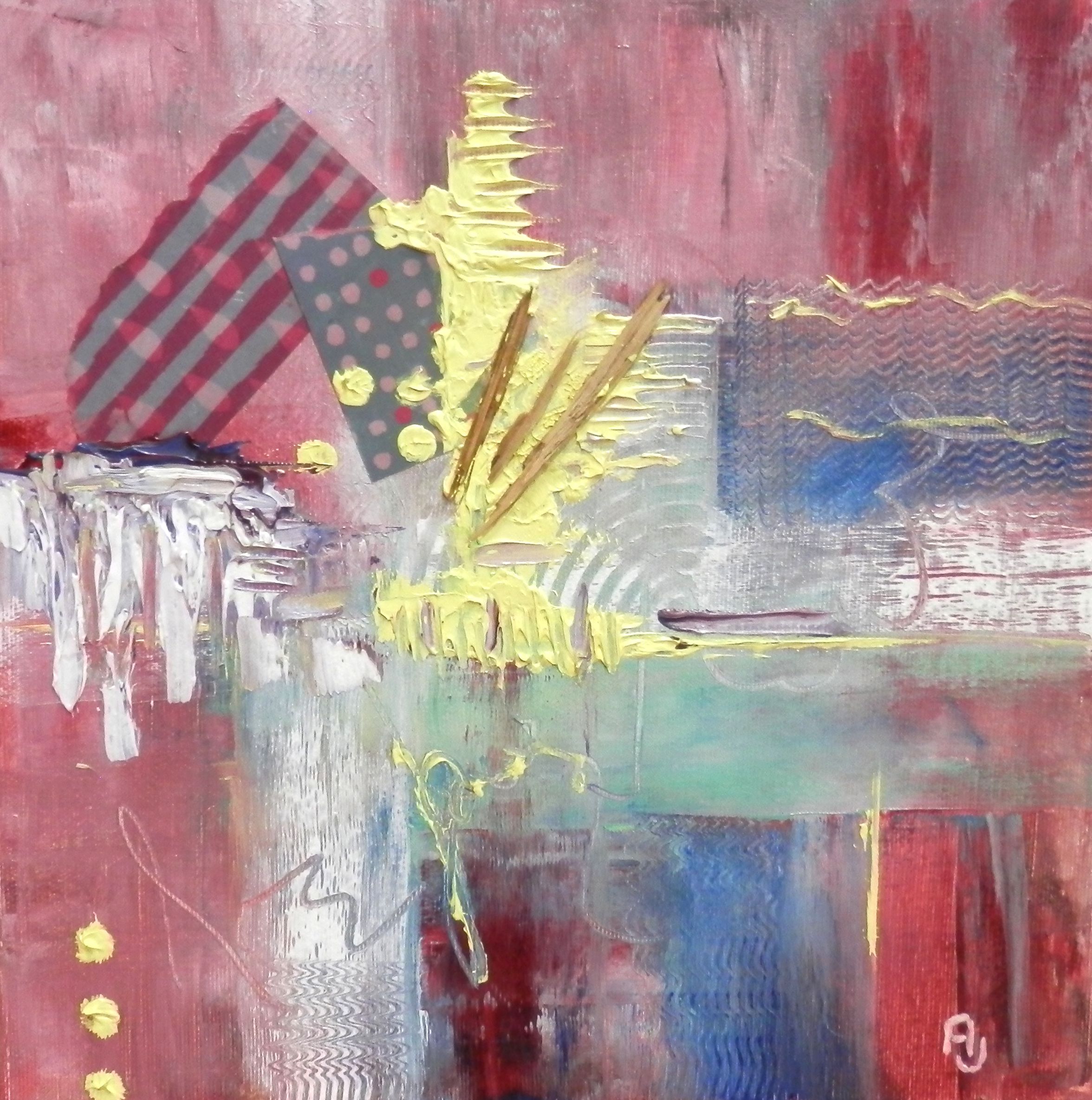 Olej, koláž na plátně 30 x 30.